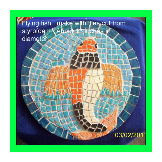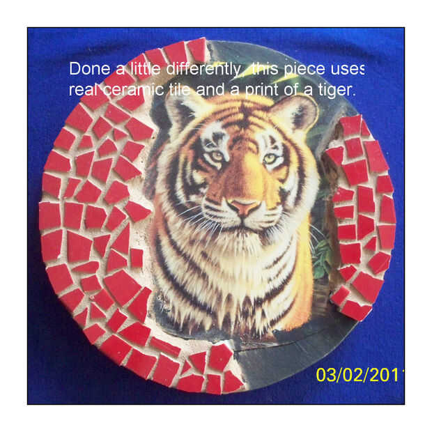 he estado haciendo este tipo de cosas por algún tiempo. Utilizar espuma de poliestireno como el azulejo, pero puede incorporar piezas de cerámica real si la pieza lo requiera. Se utiliza lechada real, y la base puede ser cartulina, cartón prensado, madera o cualquier material que puede cortar al tamaño deseado.