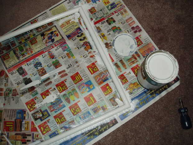 Los marcos necesitan un trabajo de pintura. Mi propietario perezoso había dejado una lata de pintura blanca debajo de mi fregadero cuarto de baño para retoques. Pintura libre.