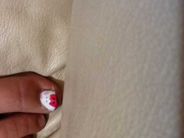 te necesita:Cepillo del arte del clavoAcetonaPulimento blanco (yo usé Sally Hansen Xtreme usar blanco en)Esmalte azul (yo usé ALDO mar usted en Ibiza)Rojo polaco (yo usé China Glaze Hey Sailor!)Claro Topcoat (yo usé Seche Vite)Los pasos:1. pintar las