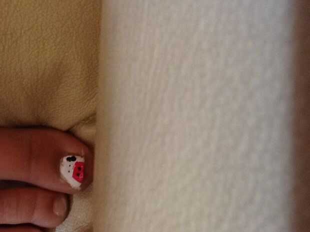 te necesita:Cepillo del arte del clavoAcetonaPulimento blanco (yo usé Sally Hansen Xtreme usar blanco en)Esmalte azul (yo usé ALDO mar usted en Ibiza)Rojo polaco (yo usé China Glaze Hey Sailor!)Claro Topcoat (yo usé Seche Vite)Los pasos:1. pintar las
