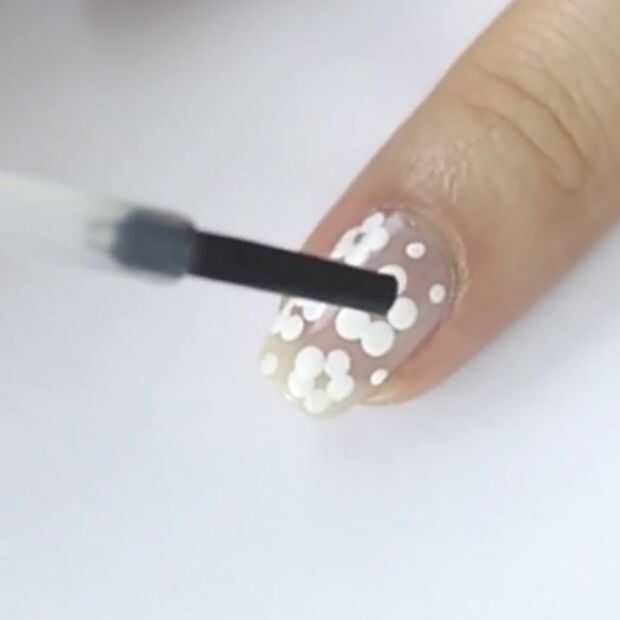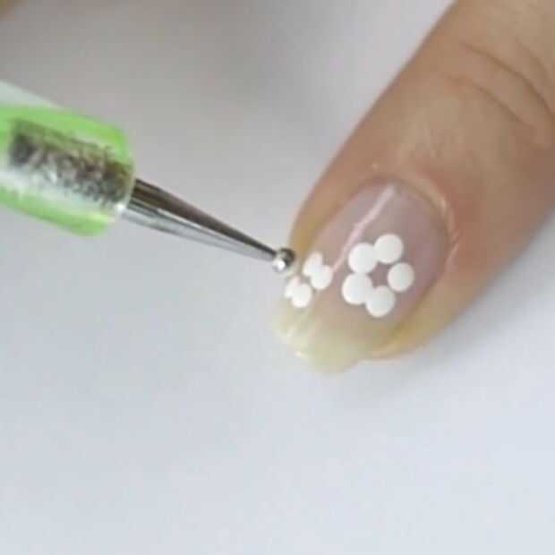 Utilizar el pulimento blanco y dotter para formar pequeñas flores de grupos de 5-6 puntos. Espacio uniformemente las flores.