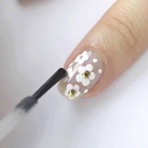 Se aplican clavos de oro u oro Polaco puntos como el centro de las margaritas.