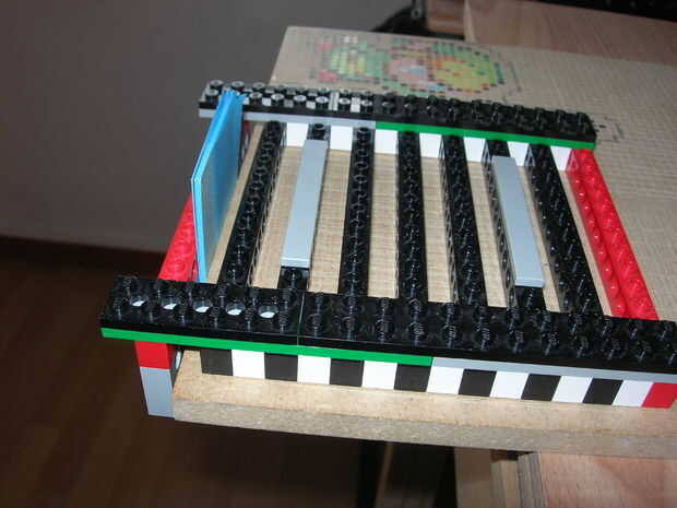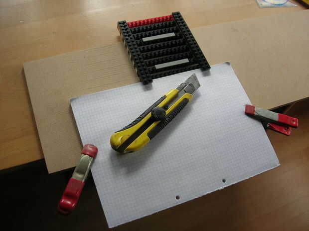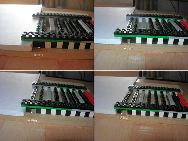 La cuestión es sin embargo, ¿Cómo cambio la herramienta exactamente 8 mm? No es un problema: todo lo que necesitas hacer es separar la guía y vuelva a 1 unidad de Lego, que sólo pasa a ser de 8 mm. Ahora puede dibujar cuadrículas de 8 x 8 mm!