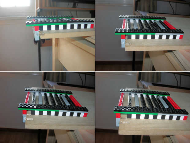 -Desplazar la herramienta por un adicional de 4 mm moviendo la guía un medio equipo Lego.