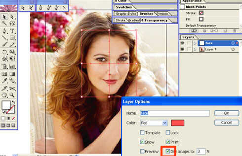 Vamos a empezar con la cara, crear nueva capa y el nombre cara, crear un cuadro de rectángulo según el tamaño de la cara, haga doble clic en el capa de cara. En el cuadro de opción de anular la selección de modo de vista previa y activar las imágenes tenues.