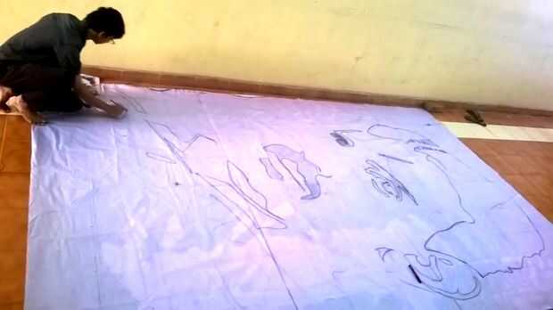 Ahora dibujar líneas de cuadrícula en la bandera de la flexión elegir un cubo de 1 x 1 pies de escala. Trazar las líneas en la bandera con la ayuda de un marcador con la impresión como referencia.