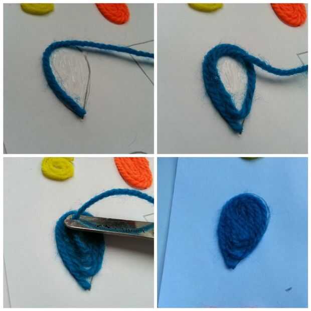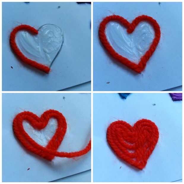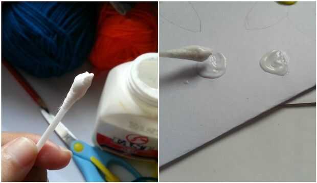 Usé cola blanca para pegar el hilo de papel y algodón torunda para aplicar pegamento en el papel (sobre diseño).