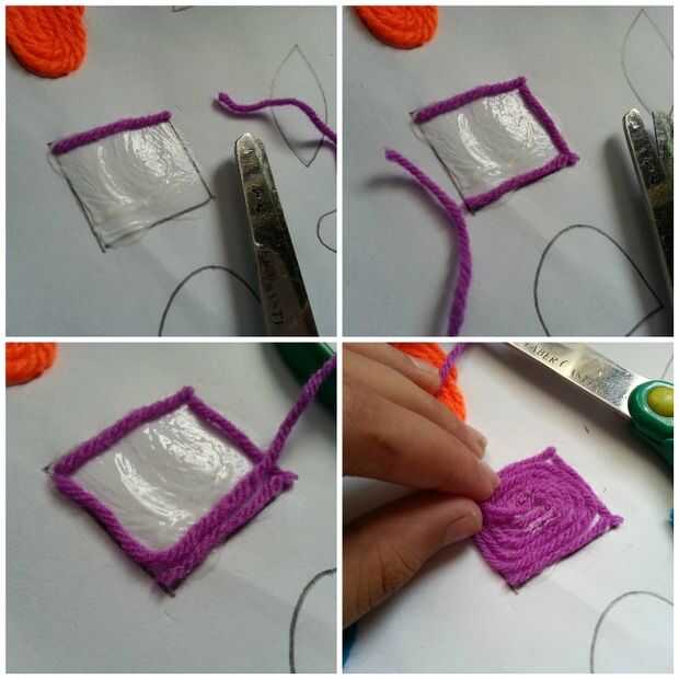 * No olvides golpee cuidadosamente el hilo pegado sobre el papel con el dedo para aplanarla.