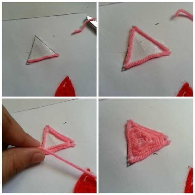* Para crear ángulos perfectos tendrás que cortar el hilo cada vez que la lana llega a una esquina en lugar de doblar el hilo (ver triángulo, cuadrado, lente, lágrima...).