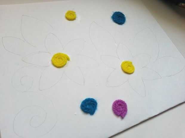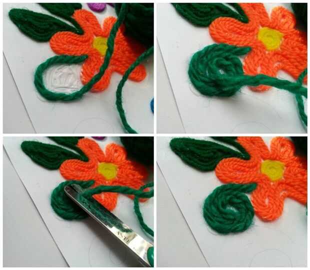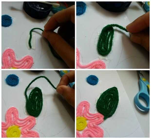 Después de que termines hilo pegado sobre los círculos van para los otros patrones o diseño (lo he hecho-flores, hojas y tallos swirly),