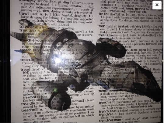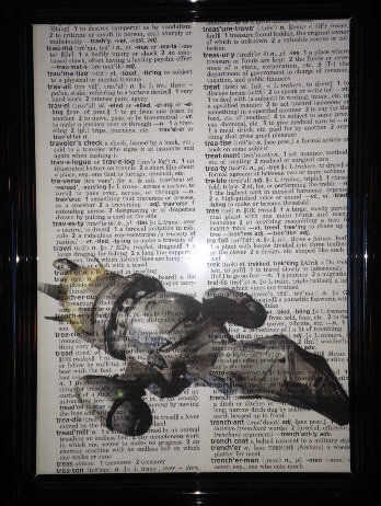 Las dos primeras fotos son de la nave Serenity de Firefly. Lo hice hace unos 2-3 años, y si observas, verás la página de en que la imagen es impresa es una página de diccionario relacionadas con viajar.