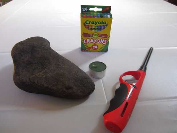 Vas a necesitar varias cosas. Para el primer proyecto vas a necesitar una roca, (llegué de un arroyo local, pero en cualquier lugar usted puede encontrar una agradable hará) una vela, un encendedor y lápices de colores. Nota, este proyecto requiere llamas encendidas, siempre tenga cuidado al tratar de este arte. Si vas a hacer el segundo proyecto, (2ª foto), vas a necesitar una roca, lápices de colores, un secador de pelo y tijeras