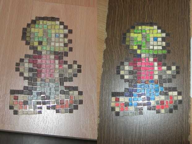 -Mientras se construía el sprite, puede añadir color a cada píxel antes o después de que lo pusieras en la película de adhesivo usando marcadores, lápices de colores, pintura...