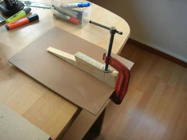 -En caso de que usted está preguntando cómo hice el "Marcos", echar un vistazo de la segunda foto. Es una pieza de suelo laminado de sobra, unido a una pieza triangular de chatarra con pegamento de madera. También he añadido un pequeño bisel en los bordes con una lijadora excentrica.