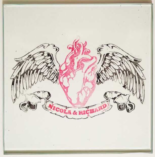 Paso 3: La placa de cristal grabado a láser con pintura o colorante marcador