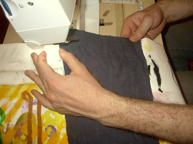 Las piezas de lienzo pintado lado encima de la mentira y cubra los lados cortos de la pieza de abajo con su color de los bordes.