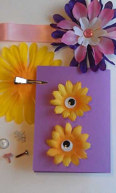 5) cosas para pegar en la parte posterior de tus flores tales como: tarjetas de felicitación, papel de construcción, pinzas de pelo, imanes, cinta (para hacer favoritos o premio pins).