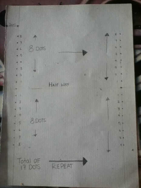 4. En la línea a mitad de camino de marcar un punto cada 1cm que va para arriba de la página - hice unos 8 puntos para arriba y 8 puntos abajo