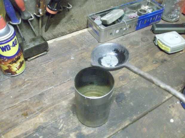 Siendo rápido y cuidado de no derramar la soldadura apagar la antorcha. Descarga ahora la soldadura fundida en el agua. do no Vierta lentamente, desea volcar en muy rápido.
