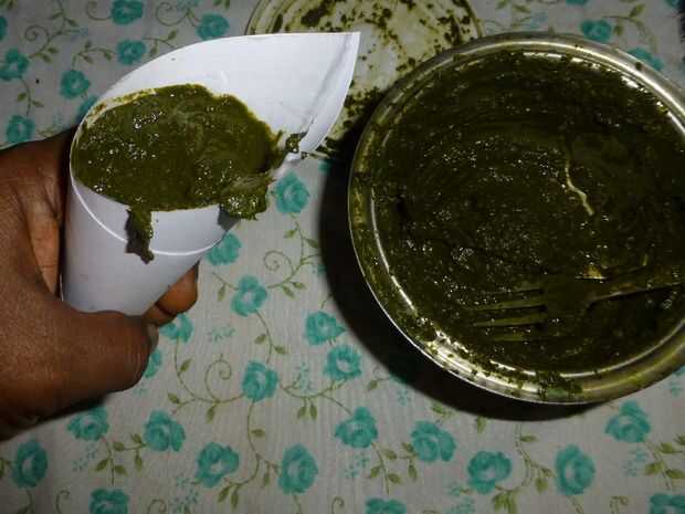 comer con las manos frente a con cubiertos siempre ha sido la norma en la India.Este instructable es acerca de cómo comer con las manos, como un indio del sur.Paso 1: Una vez que ha recibido la hoja de plátano, presione la hoja de plátano del tallo c