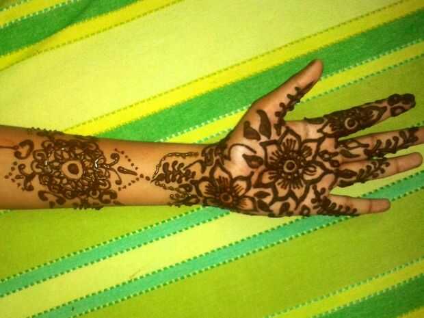 Este es el diseño acabado mehendi. Usted tiene que mantener su mano todavía para que la pasta se seca y color de la piel, que puede tener un mínimo de dos horas.