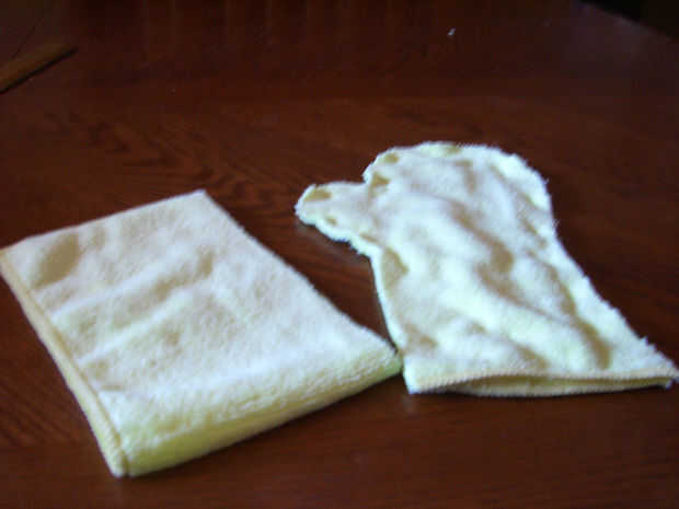 Corte de contorno, tomar el pedazo restante de tela y cortar por la mitad para los limpiadores de la lente.