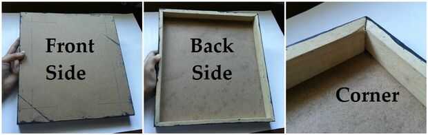 4 piezas de madera para los 4 lados del marco, tendrás que ajustar las esquinas (ver imagen). Utilice pegamento de carpintero para pegar las piezas de madera 4 para las esquinas.