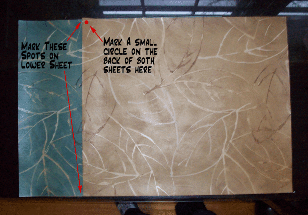 Hacer un pequeño punto en la parte trasera de dos hojas en la parte superior izquierda de la zona de superposición.