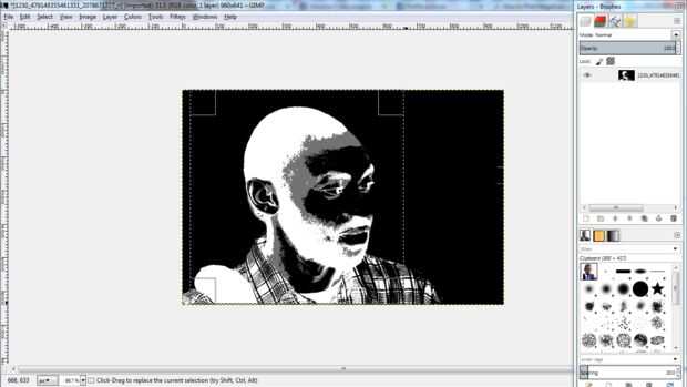 Luego presionada la tecla Mayús mientras haga clic y arrastre desde cualquier esquina para obtener un cuadrado perfecto. Mueva el cuadrado para seleccionar la parte de la imagen que desea conservar entonces