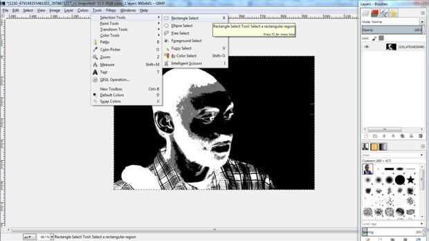 Herramientas > herramientas de selección > seleccionar rectángulo