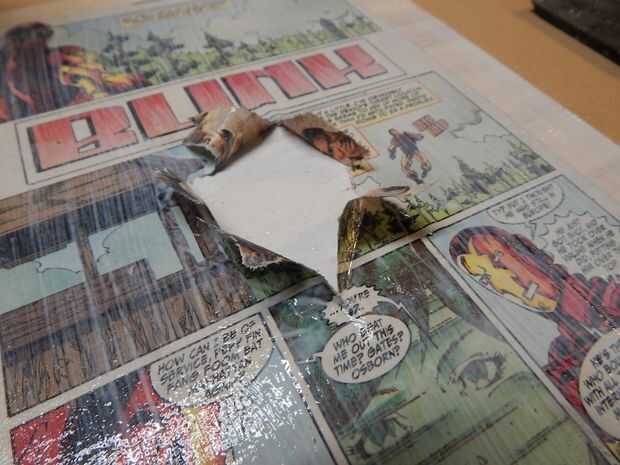 Al aplicar la capa superior desea Modge Podge en ambos lados de las aletas del agujero.