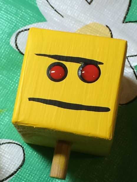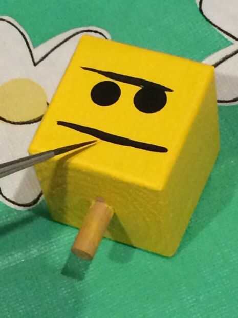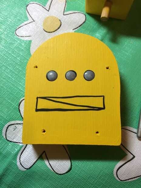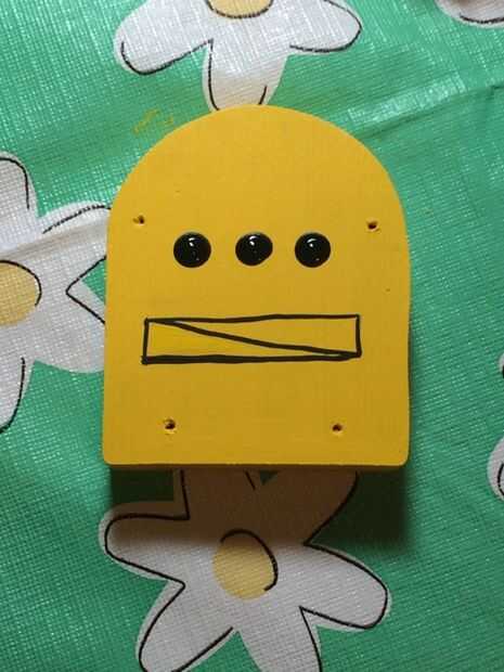 Ahora es el momento de pintar los detalles, pintar primero las áreas negras como se muestra. Recuerde que no necesita ser perfecto, imperfección añade carácter. Después el negro se seca añade los puntos de plata a su pecho y pinta la parte inferior de sus pies. Luego de terminar sus ojos con puntos rojos y amarillo entonces alumnos (después de que el rojo se seca). Uso la parte posterior de la brocha para los círculos, simplemente sumergirla en la pintura y dab el círculo.