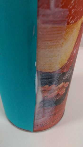 Aplique una capa delgada de ModPodge la lata y suavemente ponga el papel alrededor de la. Trate de evitar las arrugas y burbujas de aire. Me resulta más fácil a veces pintar rayas anchas de ModPodge y colocar el documento en secciones para evitar el ModPodge secado demasiado rápido.