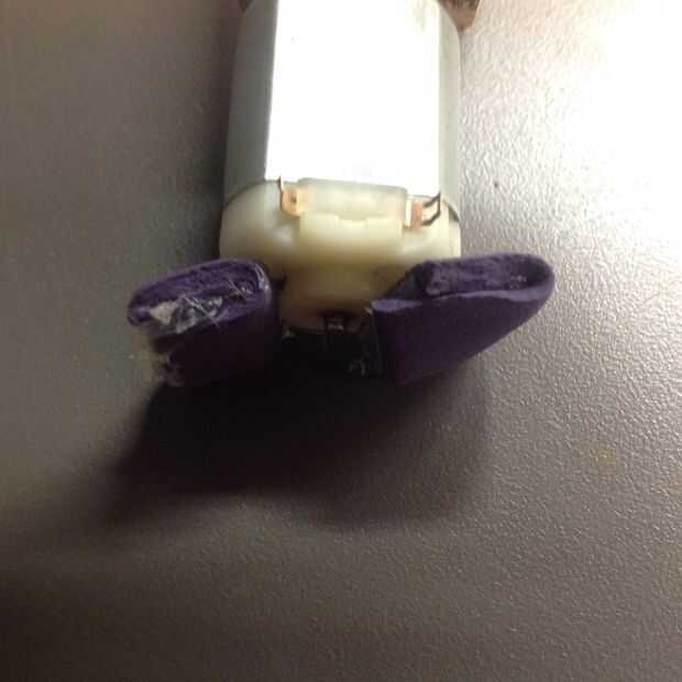 Te recomiendo que uses algún tipo de espuma de poliestireno grueso, como el tipo de lápiz grips están hechos de. Realmente arrancó a un agarre de lápiz para mi espuma. Si se utiliza cinta de espuma, usted todavía puede caliente pegamento. La vibración de la máquina puede provocar muy bien el motor de volar utilizando solo cinta.