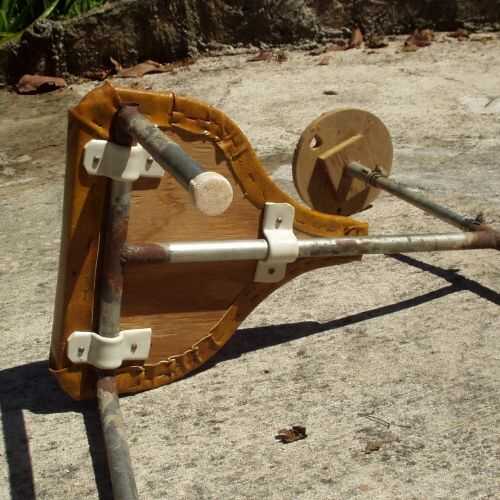Las dimensiones de la tubería dependen de las dimensiones del usuario. Pensar en una silla suspendida en el aire a una altura cómoda. Luego corte el tubo la longitud adecuada para conectar el asiento con el suelo.
