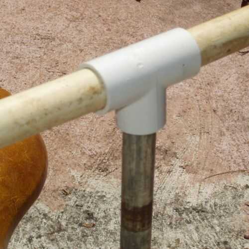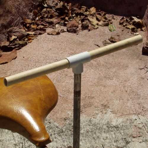 La idea básica se puede demostrar utilizando tubería de PVC y un conector "T". La tapa original de "T" fue hecha de tubo de 3/4" EMT y ajuste sin apretar sobre la parte superior de la tubería de apoyo vertical 1/2".