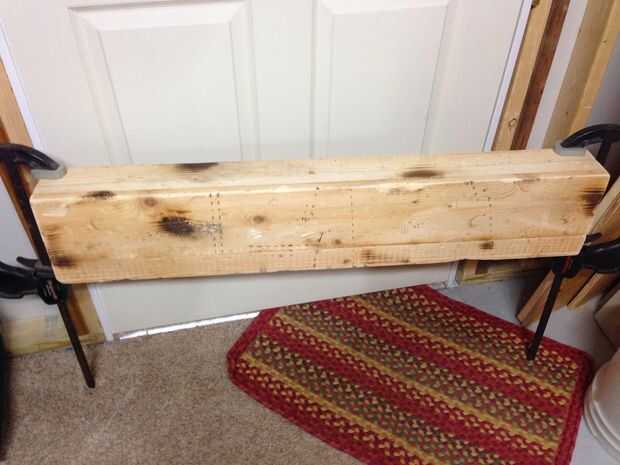Después de sentir bien sobre el nivel de go angustiante, sobre toda la pieza con lija de grano 220 en una lijadora orbital. Esto será preparar la superficie para el tinte.
