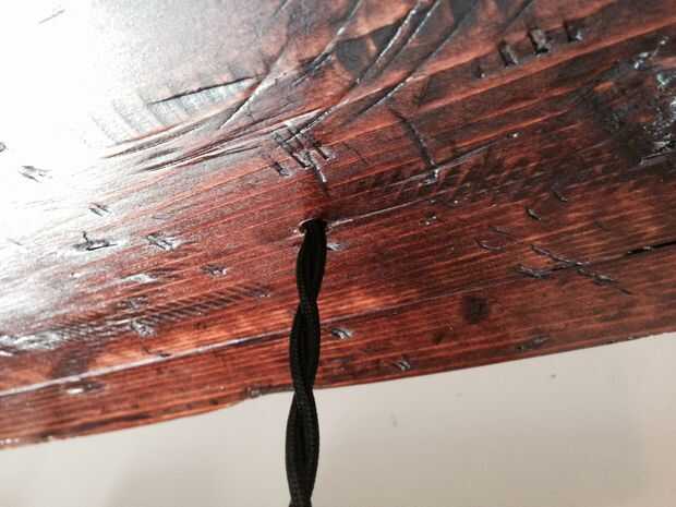 - Perforaciones grandes bastante para el cable a montar en la luminaria uniformemente espaciados. Hice 5 espacios de agujeros 6 2/3 pulgadas aparte.