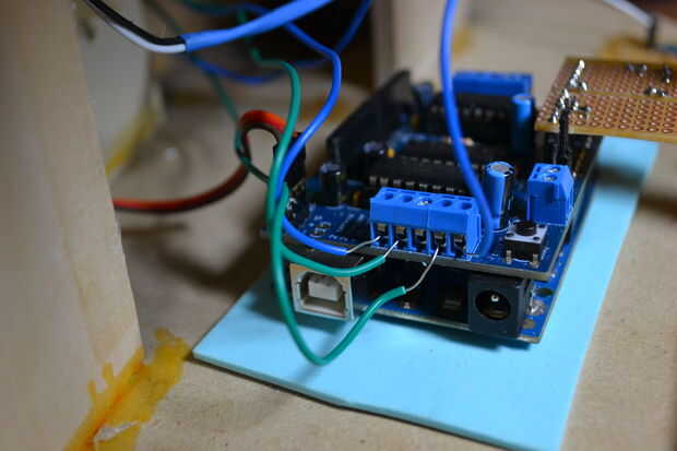 1.) palo la espuma en la base con pegamento o cinta adhesiva donde desea pone el arduino que debe estar lo suficientemente cercano de cada uno de los 3 motores.