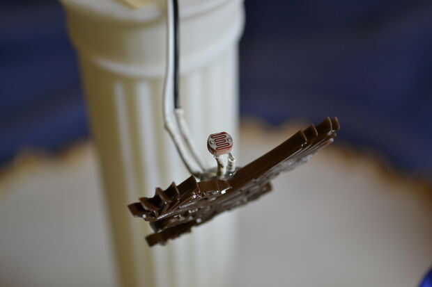 abrigo 2.) los dos cables en el cable envuelven (deje el otro extremo no conectado a la fotorresistencia abrir).