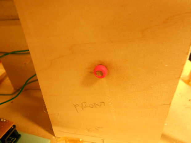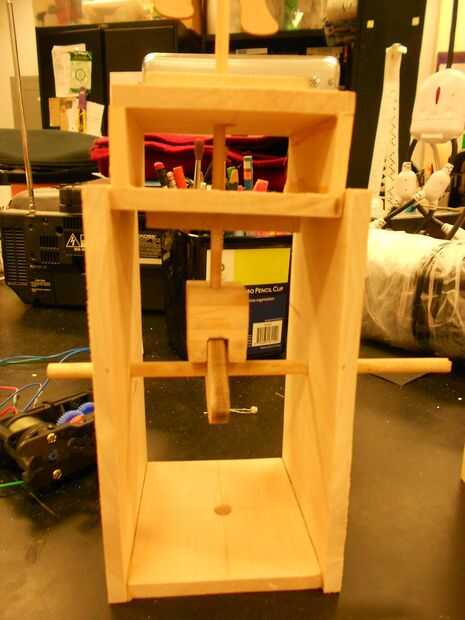 Para saltar el Artemis, corte cam elíptica y construir bloque cubo con tilo. Nuestra plantilla para una 3 pulgadas por 1 pulgada ancho elíptica cam con agujero central está incluido en este Instructable. Para el bloque del cubo, corte una ranura de 0,375 pulgadas en un cubo de madera, o construir una estructura similar por piezas más delgadas capas de madera. Nuestro bloque del cubo es 1 x 1 en x 1,25 en dimensiones con un surco de 0,375 pulgadas. Taladre el agujero para el cálculo palo de apoyo hasta la mitad en el cubo. Fabricar base caja a casa la leva y el bloque del cubo. El borde de la leva y el interior del bloque del cubo de la arena y asegúrese de que aplicar parafina o grafito antes de operar la leva, árbol y tacos para déjelo girar suavemente.