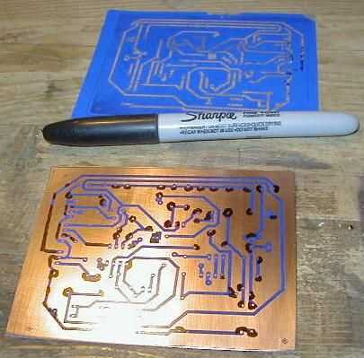 Usted debe ser capaz de decir en la imagen que antes de que transferí mi resistir grabado sobre mi tablero revestido limpiar el cobre y había pulido para arriba todo brillante y brillante. Esto es importante para que el ácido puede llegar hasta el cobre y trabajar en él.
