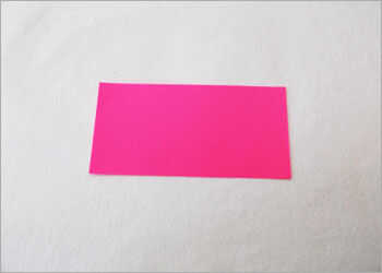 Para hacer los pétalos de loto tomar un papel de color rosa de la medida especificada y doblar por la mitad longitudinalmente.
