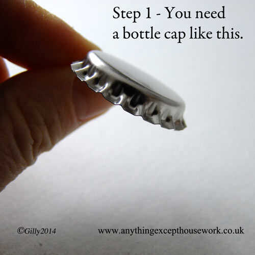 un sencillo tutorial sobre cómo hacer una tapa de la botella en un pinPaso 1: materiales Se necesita:1. una tapa de la botella2. una ficha de refresco3. un pequeño pasador de seguridad4. pinzas (no se muestra)Paso 2: Poner el safetypin a través de la
