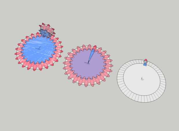 Repita el proceso anterior para el engranaje más pequeño (gira 45° múltiplos, 360° / 8 dientes) y habrá terminado de modelar todos los engranajes para este diseño.