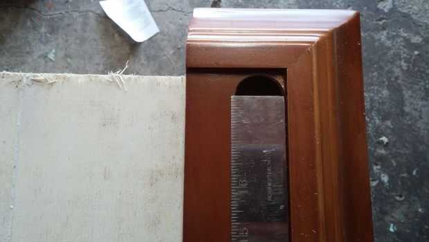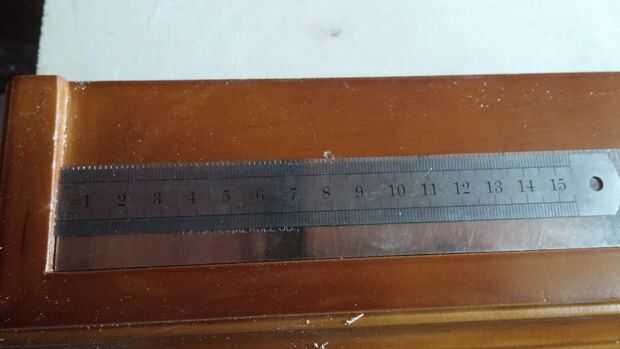 Medir 20mm (lo siento, solo tengo una regla de acero mm pequeña) de los labios frontales y laterales. Esto le dará suficiente espacio para los tacos de 1 1/8.