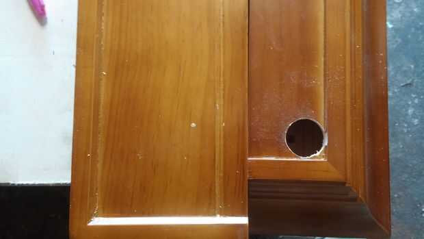 Darles la vuelta para que la plataforma está sentado lo que solía ser correctamente, y avellanado perfore los 4 orificios en uno, pero sólo dos los interiores en la otra.