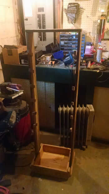 Alinee la línea inclinada con el borde de la tabla para obtener el ángulo. Las pinzas son útiles para esto. La distancia entre las clavijas dependerá de su equipo. Fui seis pulgadas entre las clavijas. Poner las clavijas en el interior de las planchas de lado, pero sin embargo desea hacerlo sugiero que tras colocar el primer rastro de peg alrededor de él y hacerlo para todas las ubicaciones de peg.
