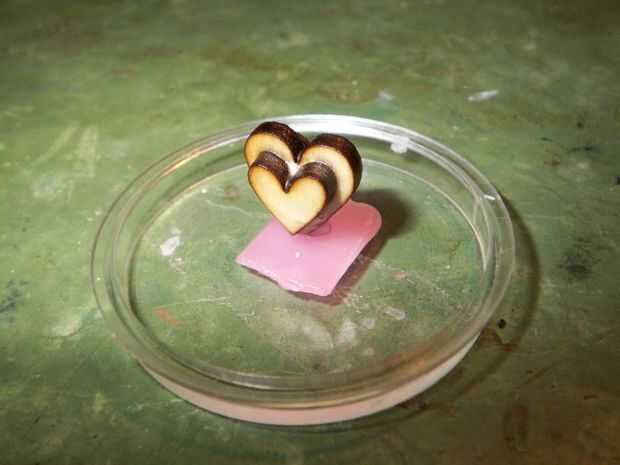 Para un relleno en el molde de silicona pega una pequeña hoja de cera en la parte inferior. En este se puede colocar el corazón mientras que la cera es todavía suave.