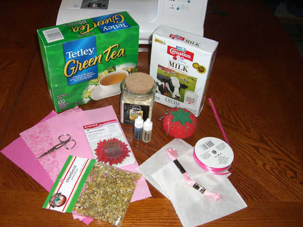 Colorantes, aromas (opcionales) y rellenos para bolsitas de té o popurrí para sobres.